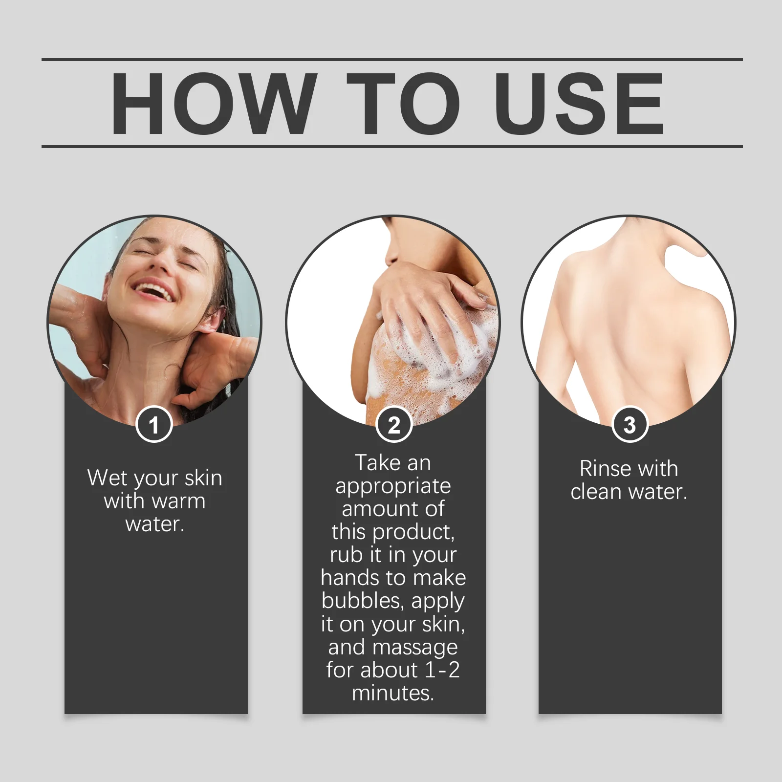 - Lather soap in hands and apply