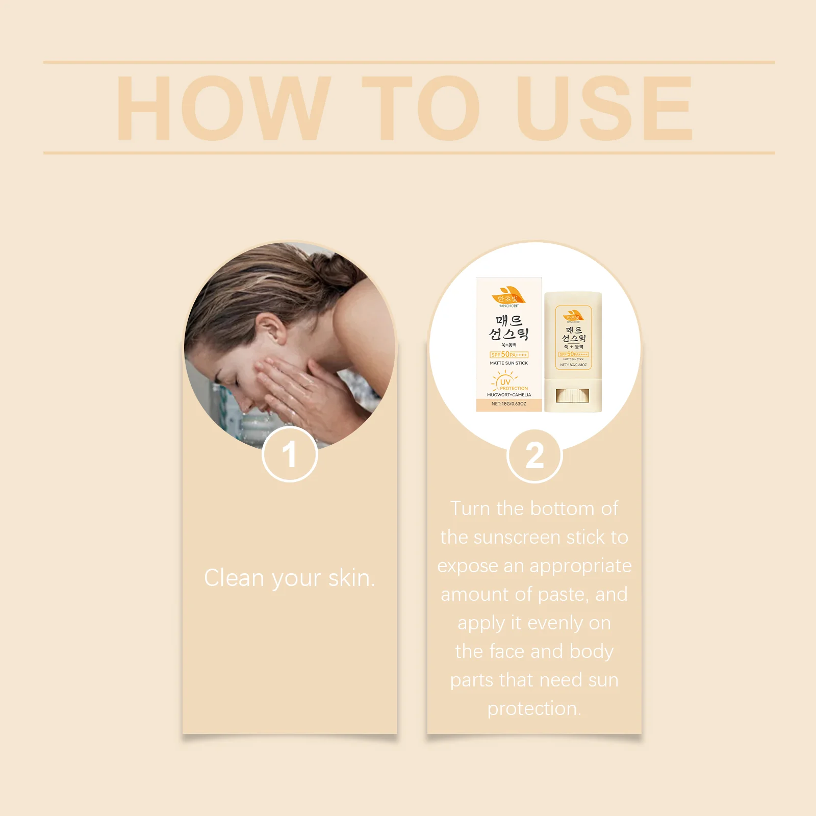 HANCHOBIT Matte Sunscreen Stick features camellia and wormwood extracts for effective UV protection. This lightweight formula reduces sun damage while moisturizing skin.